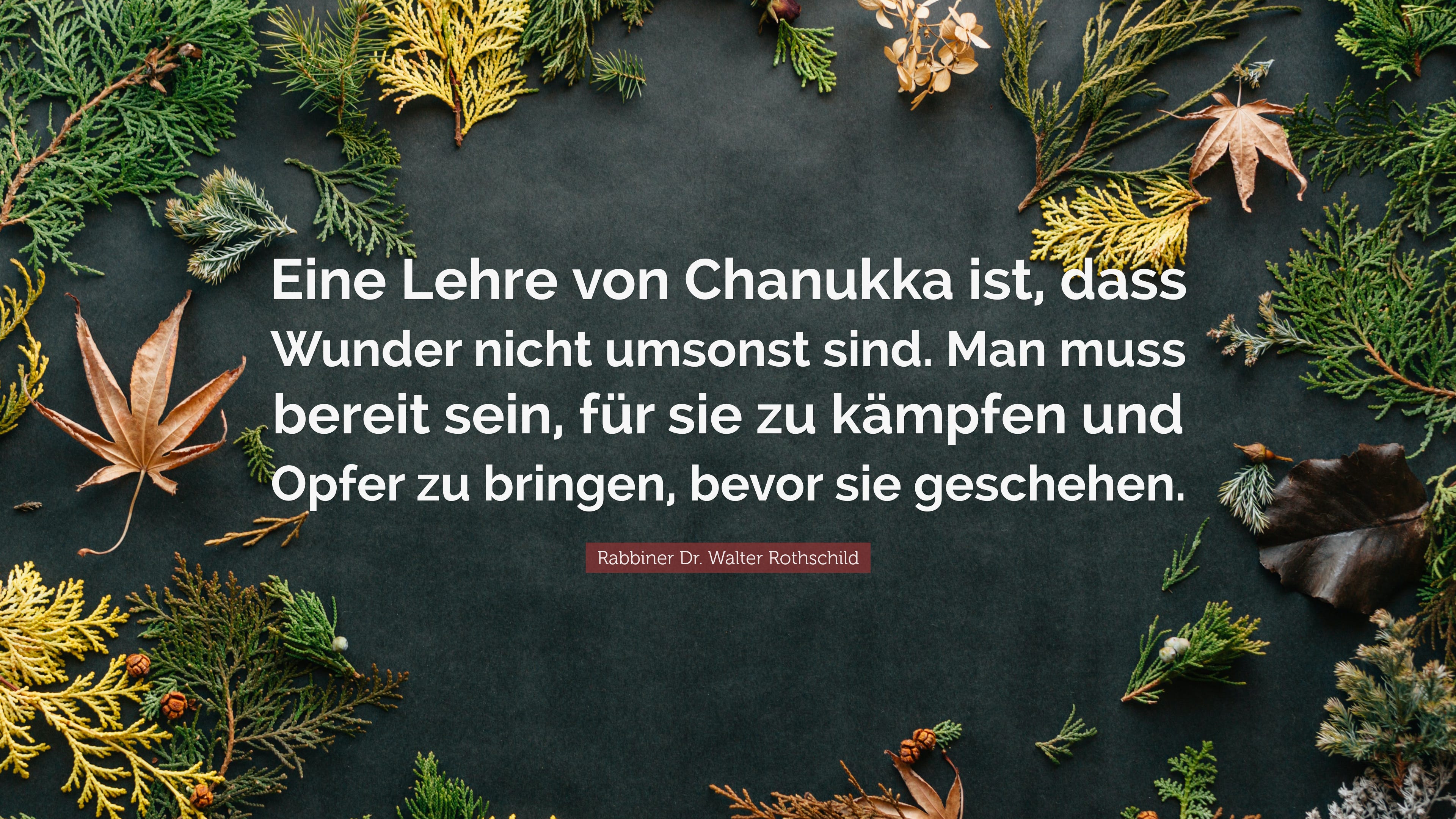 An Chanukka feiern Juden das Licht, das die Dunkelheit durchbricht. Doch Rabbiner Rothschild erinnert uns daran: Das Öl brannte nicht von selbst. Zuerst kamen der Kampf, der Mut der Makkabäer und das Opfer jener, die sich der Unterdrückung nicht beugten. Das Wunder war die Antwort auf menschliches Handeln, nicht sein Ersatz.