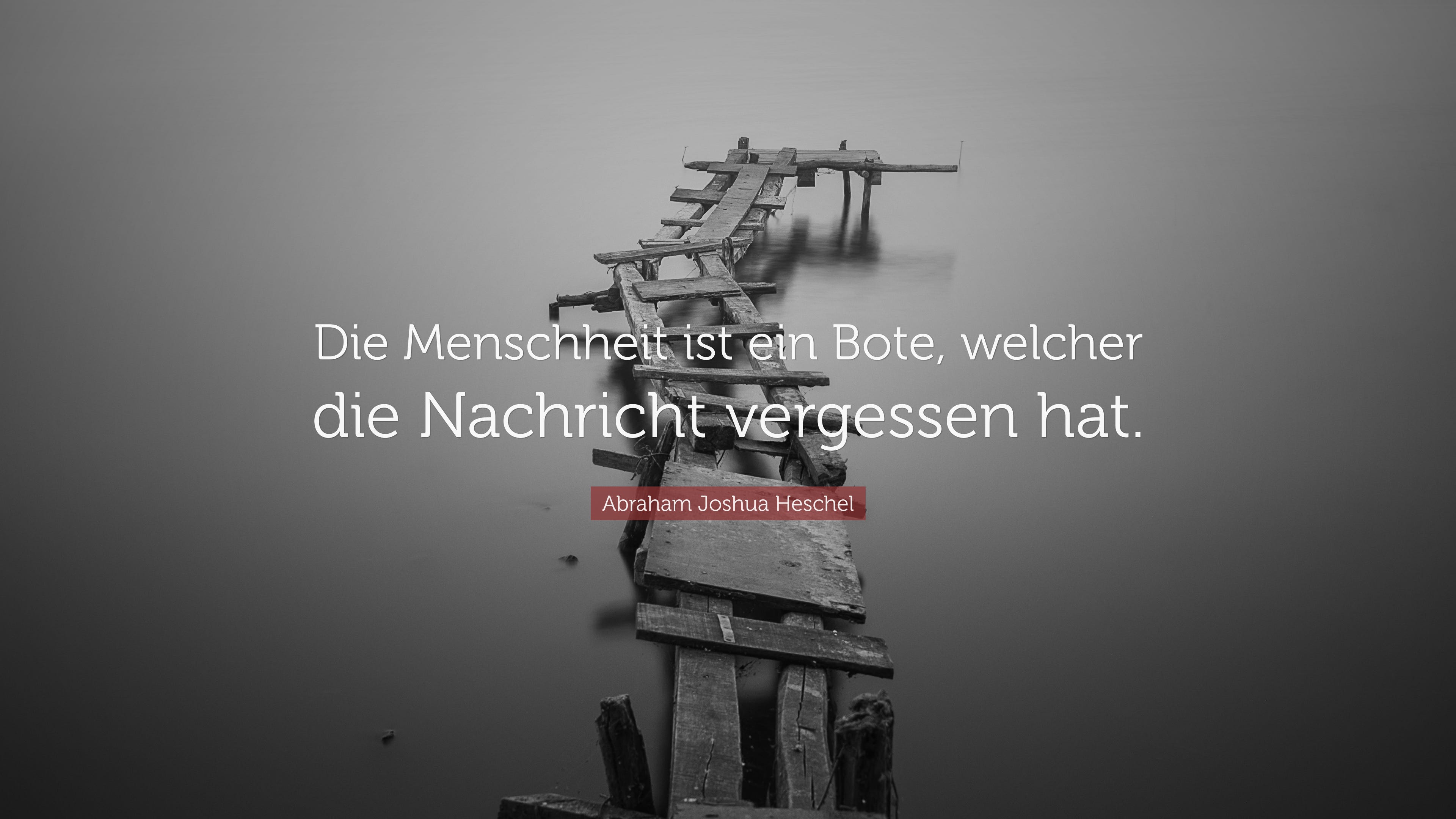 In der Tora heißt es, der Mensch sei aus dem Staub der Erde gemacht und zugleich ein Hauch Gottes. So sind wir Bürger zweier Welten – des Sichtbaren und des Unsichtbaren. Mit seiner Warnung „Die Menschheit ist ein Bote, welcher die Nachricht vergessen hat“ erweist sich Abraham Joshua Heschel als Prophet der Moderne.