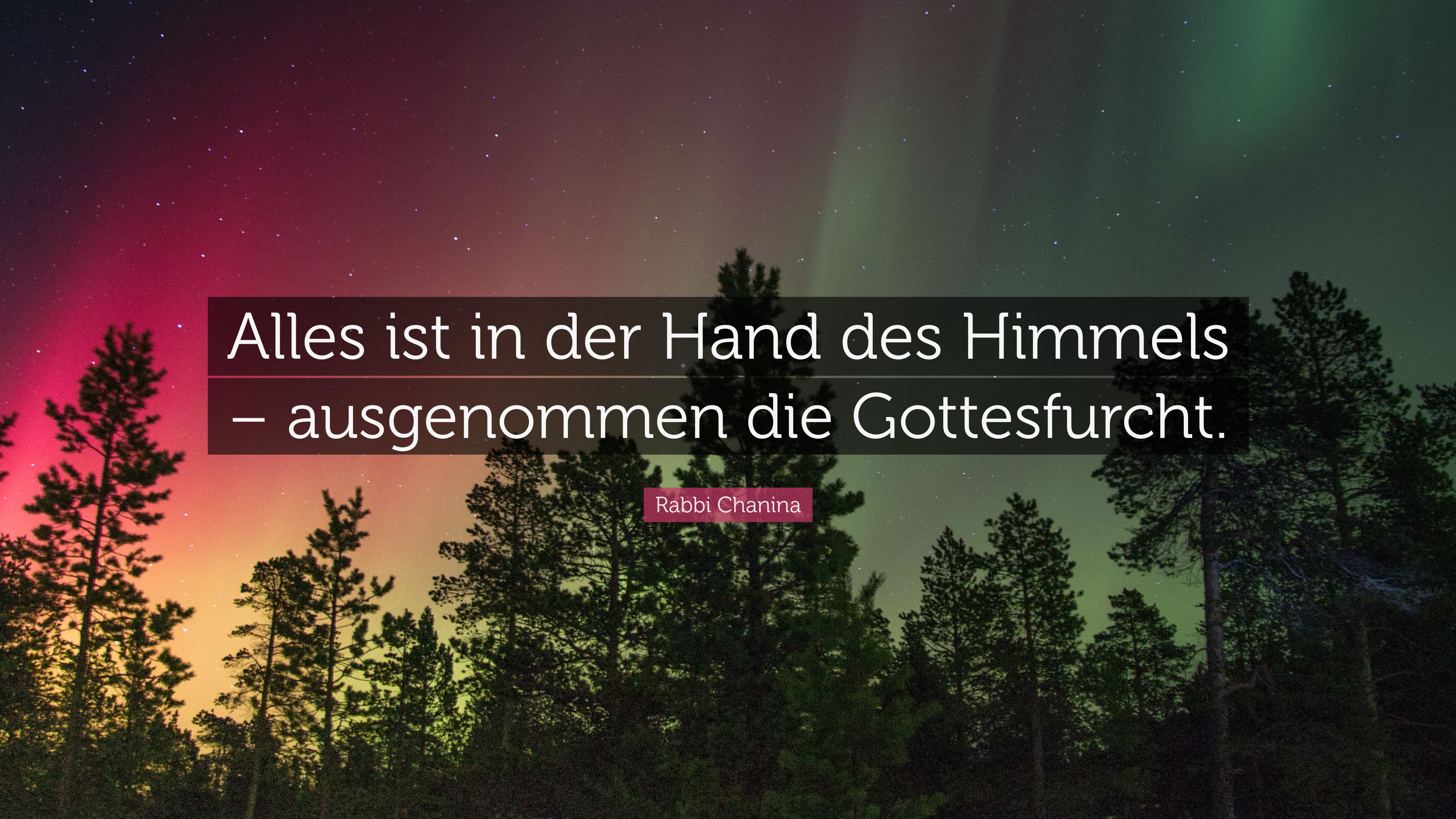 Und Rabbi Chanina meinte: Alles liegt in den Händen des Himmels, außer der Gottesfurcht, wie es heißt: „Und nun, Israel, was verlangt der Herr, dein Gott, von dir, außer dass du den Herrn, deinen Gott, fürchtest, auf allen seinen Wegen wandelst, ihn liebst und dem Herrn, deinem Gott, mit ganzem Herzen und mit ganzer Seele dienst“.